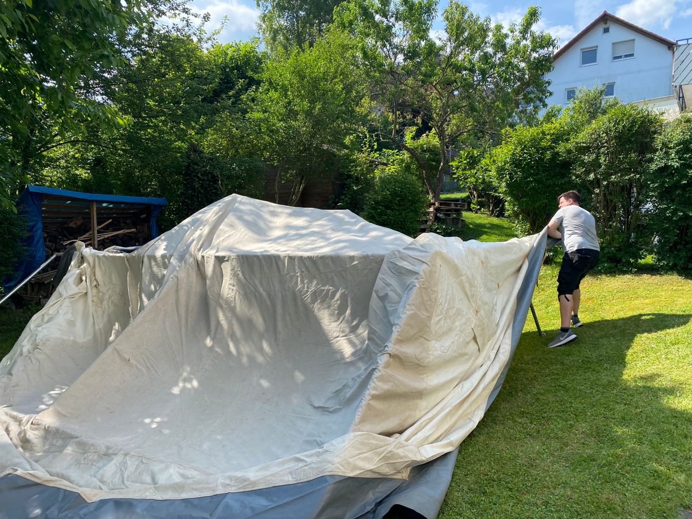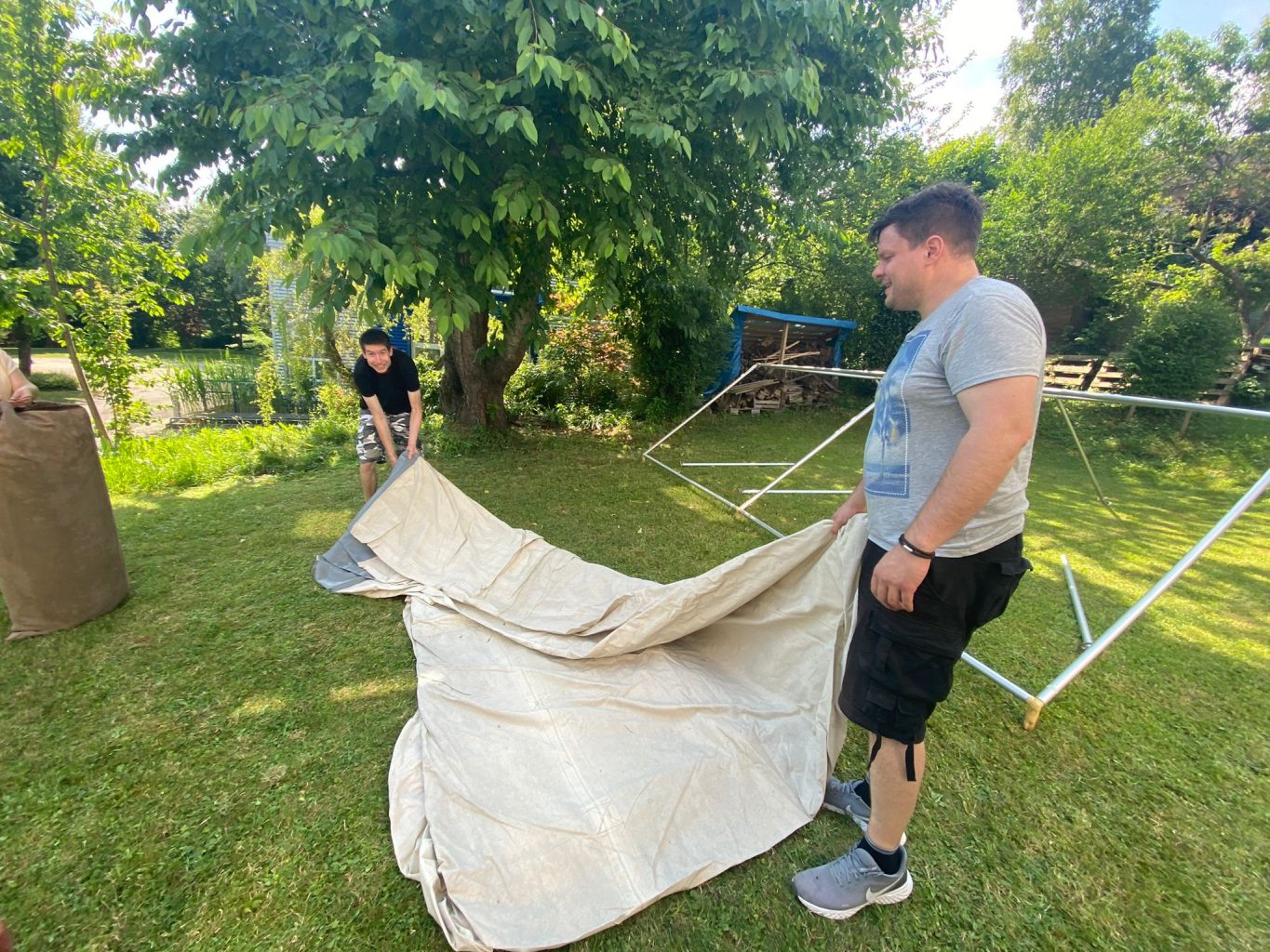 Das hat sich ein kleines Team von Ehrenamtlichen mit Felix und Tobias zum Anlass genommen und an Fronleichnam alle Zelte des Jugendwerks unter die Lupe genommen. Sämtliche SG20 Zelte sowie unser Küchenzelt und das große Gemeinschaftszelt wurden aufgebaut bzw. die Zelthäute auf Schäden überprüft und auf Fotos festgehalten.