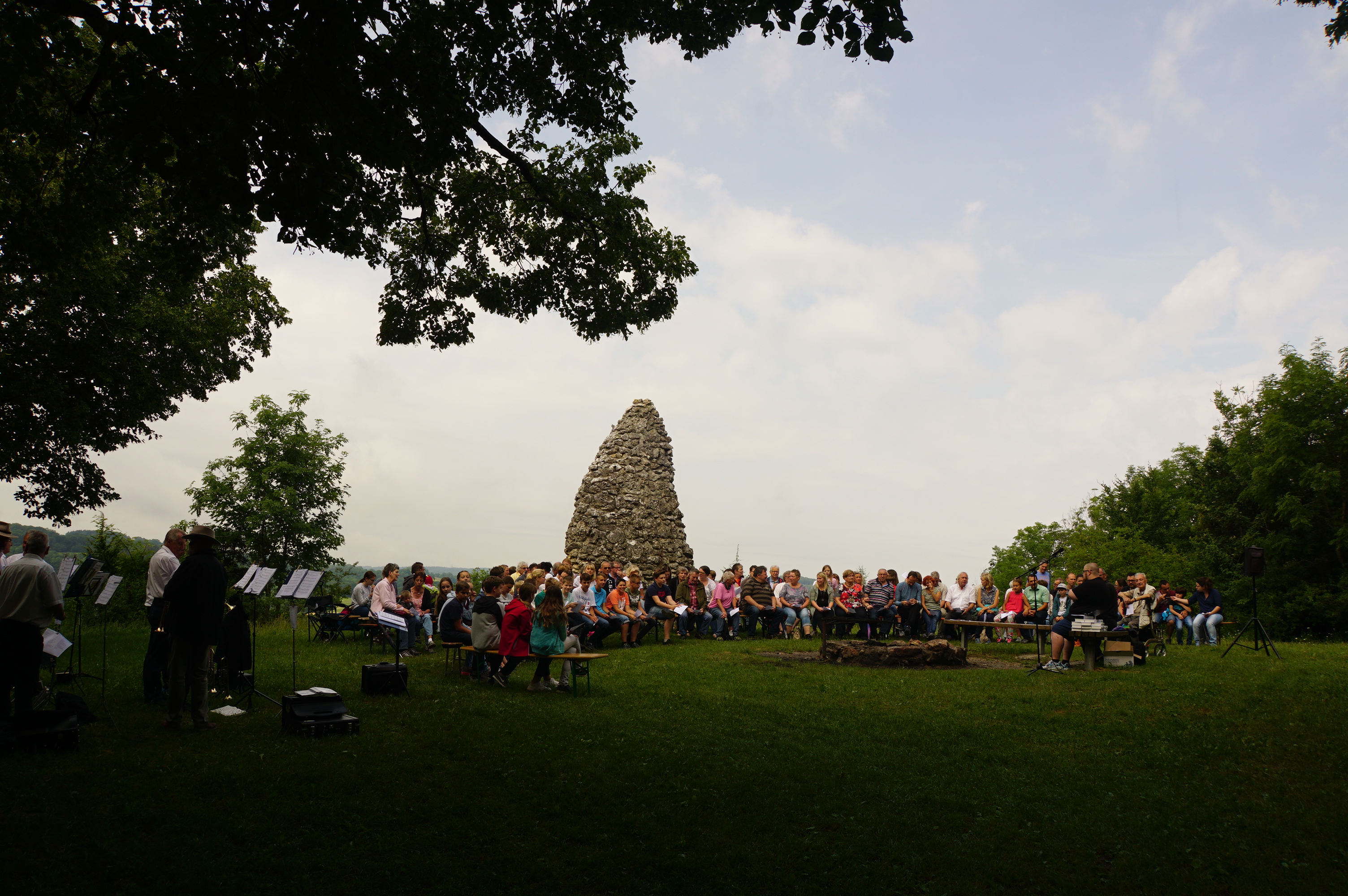 Mittlerweile hat es schon gute Tradition, dass der neue Konfirmandenjahrgang der Christuskirchengemeinde im Täle seine Bibeln an der Steinpyramide in Auendorf überreicht bekommt. Insgesamt 21 Heranwachsende aus Reichenbach, Deggingen, Bad